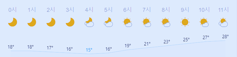 * 눈비 올 확률은 위 이미지에서 시간별 기상 상태 참조