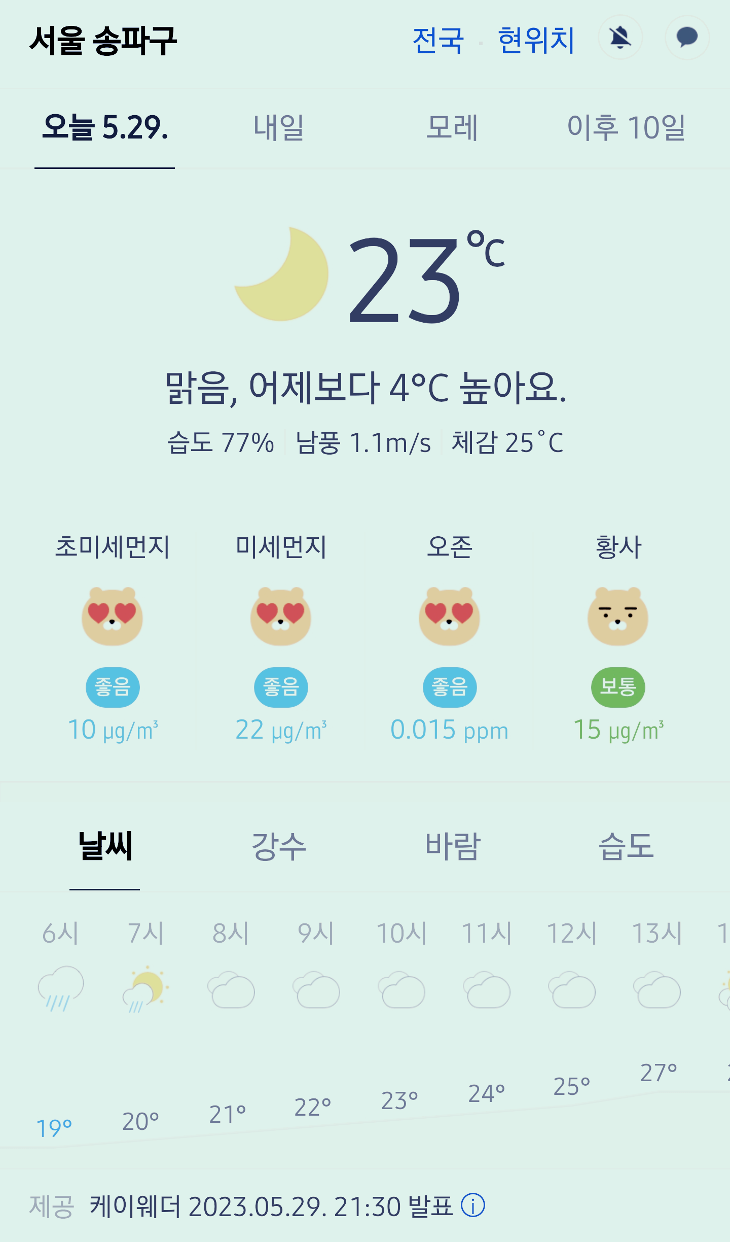 >>>서울 강남 송파구 날씨 2023년 5월 29일. 서울 강남구 오늘의 날씨, 오늘 날씨, 2023 0529, 초미세먼지, 미세먼지, 황사, 자외선