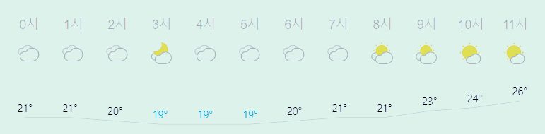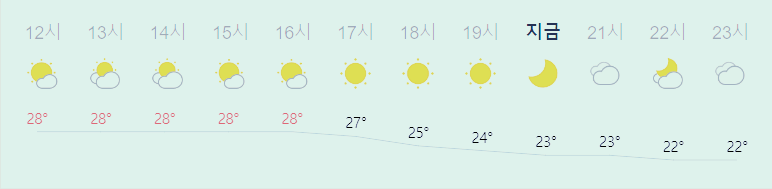 최저기온 19도(오전), 최고기온 28도(오후)