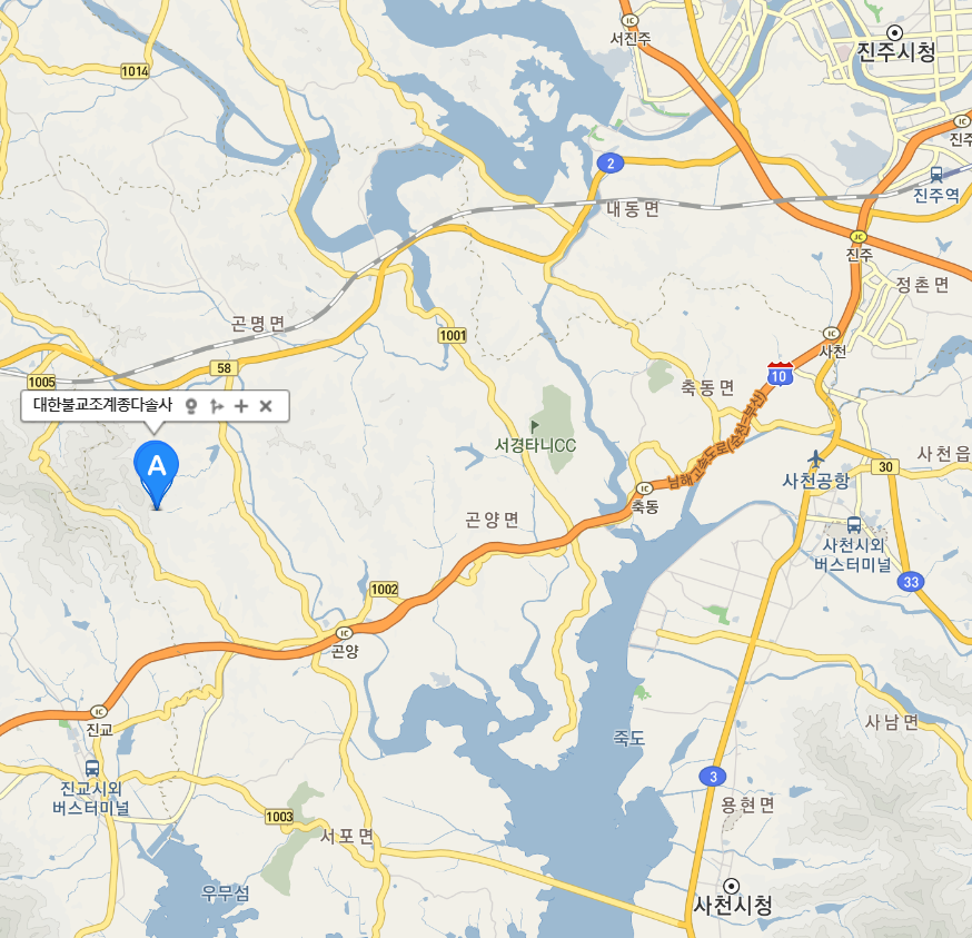 아래 지도에서 표시된 곳이 경남 사천시 곤명면의 절 다솔사 입니다.