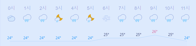 최저기온 24도(오전, 오후), 최고기온 26도(오전), 25도(오후)