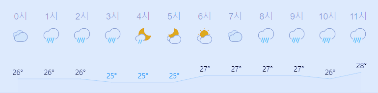 최저기온 25도(오전, 오후), 최고기온 30도(오후)