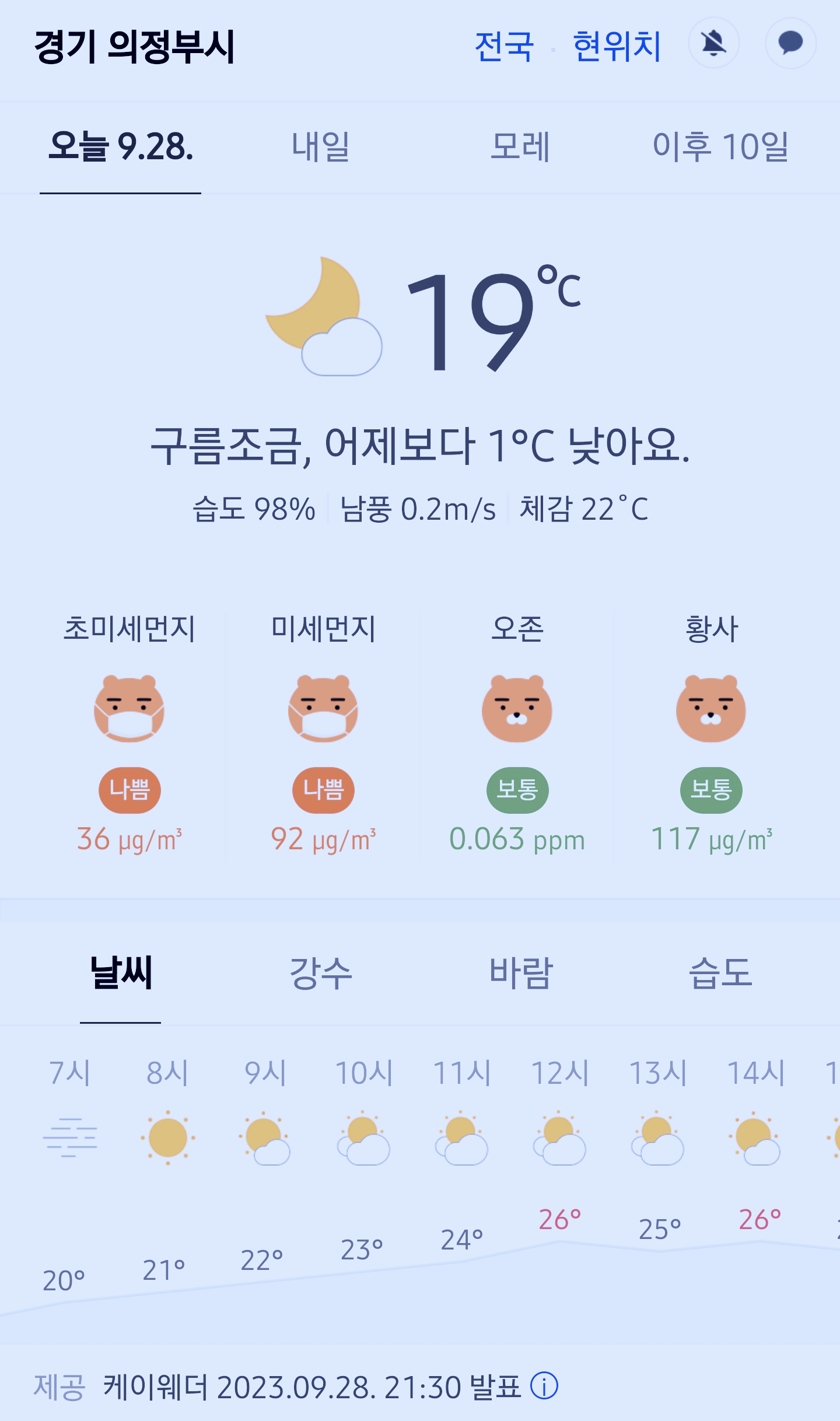 >>>경기도 의정부시 날씨 2023년 9월 28일. 의정부 날씨, 오늘의 날씨, 오늘 날씨, 2023 0928, 초미세먼지, 미세먼지, 황사, 자외선
