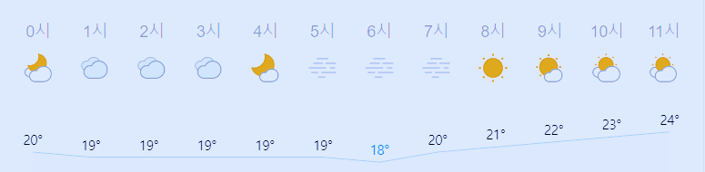 최저기온 19도(오전), 최고기온 22도(낮)