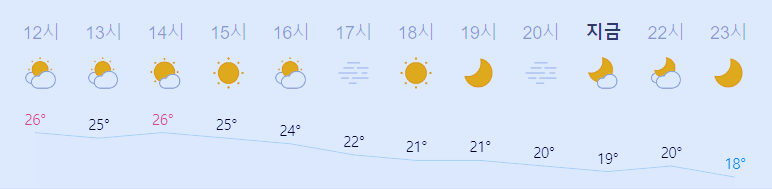최저기온 18도(오전), 최고기온 26도(낮)