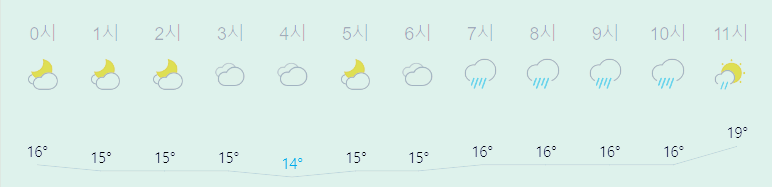 * 눈비 올 확률은 위 이미지에서 시간별 기상 상태 참조