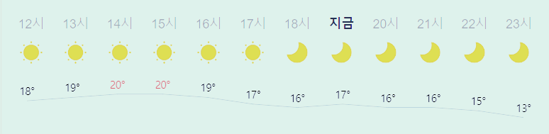 최저기온 14도(새벽, 심야), 최고기온 19도(낮)