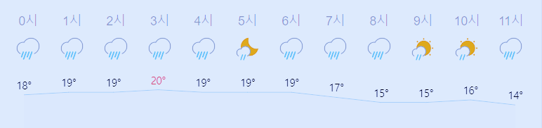 * 눈비 올 확률은 위 이미지에서 시간별 기상 상태 참조