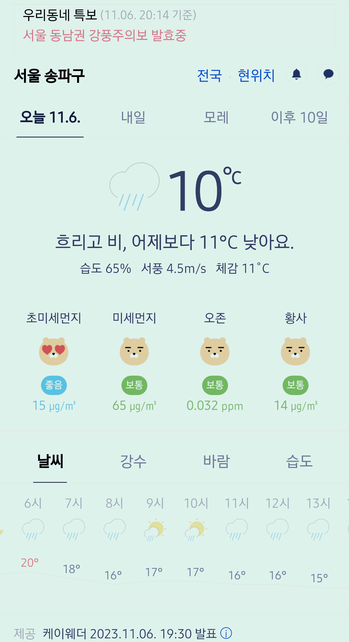 >>>서울 강남 송파구 날씨 2023년 11월 6일. 서울 강남구 오늘의 날씨, 강풍주의보 발효중, 오늘 날씨, 2023 1106, 초미세먼지, 미세먼지, 황사, 자외선