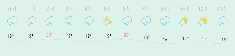 * 눈비 올 확률은 위 이미지에서 시간별 기상 상태 참조