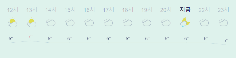 * 눈비 올 확률은 위 이미지에서 시간별 기상 상태 참조