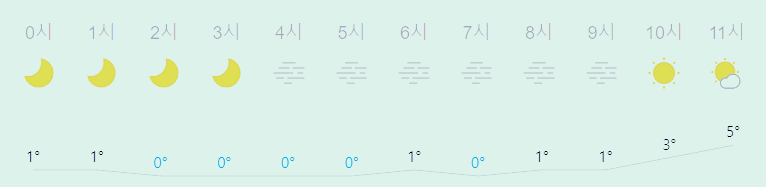 최저기온 2도(오전, 밤), 최고기온 5도(오후)