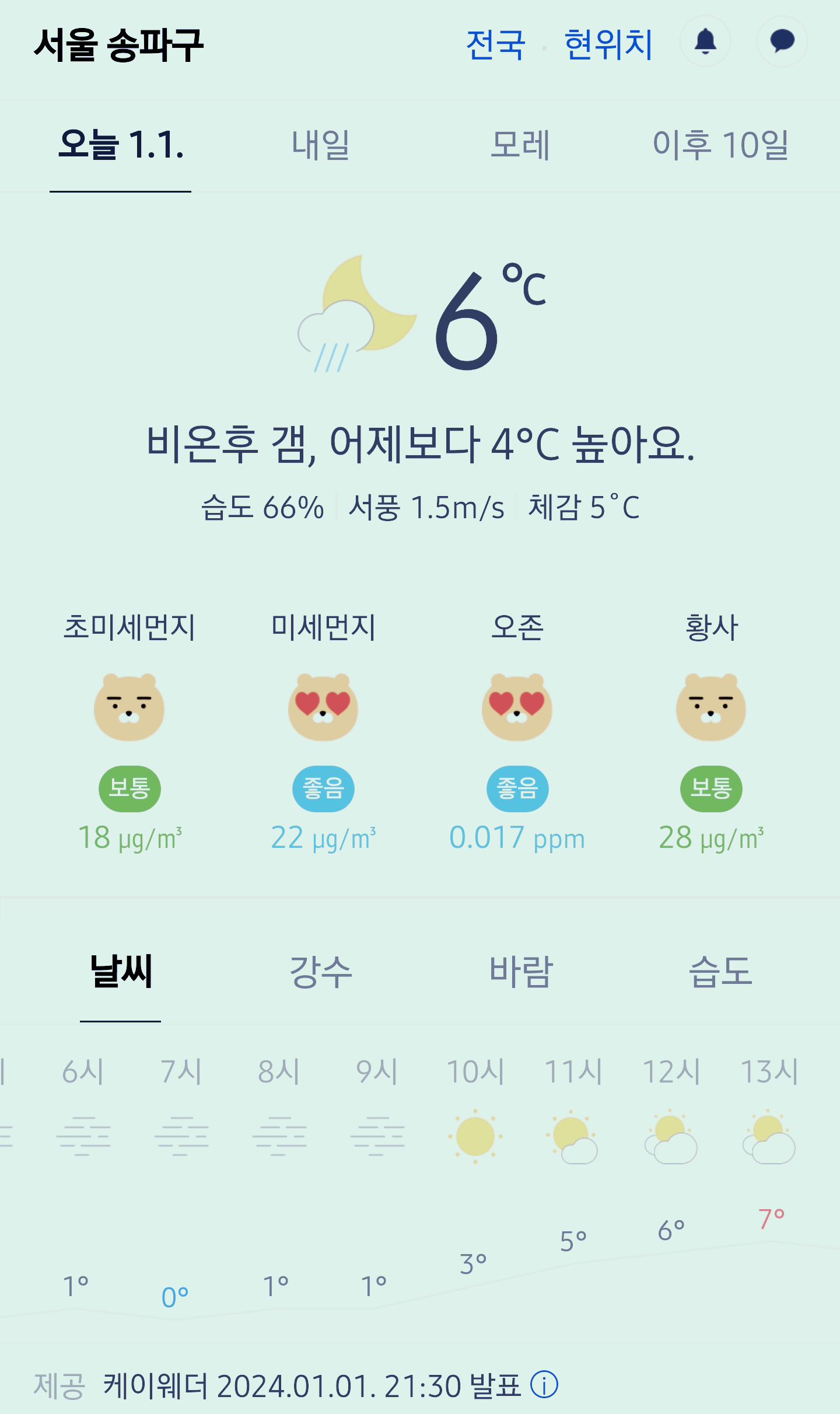 >>>서울 강남 송파구 날씨 2024년 1월 1일. 서울 강남구 오늘의 날씨, 오늘 날씨, 2024 0101, 초미세먼지, 미세먼지, 황사, 자외선