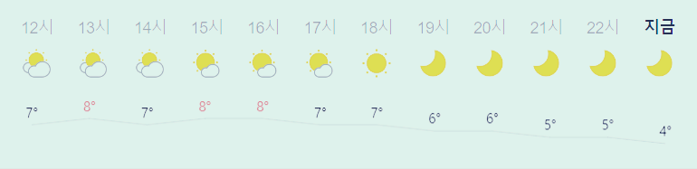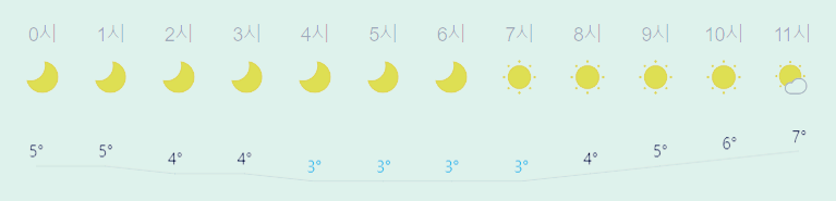 * 눈비 올 확률은 위 이미지에서 시간별 기상 상태 참조