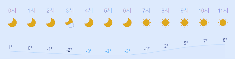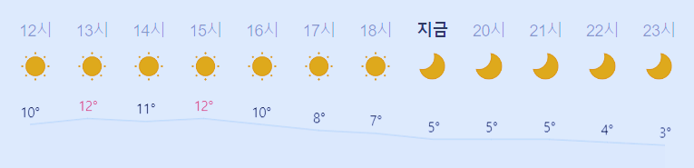 최저기온 -3도(오전), 최고기온 12도(오후)