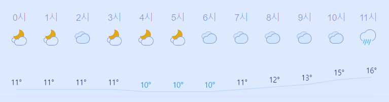 * 눈비 올 확률은 위 이미지에서 시간별 기상 상태 참조