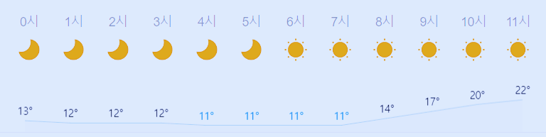 * 눈비 올 확률은 위 이미지에서 시간별 기상 상태 참조