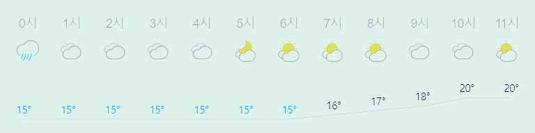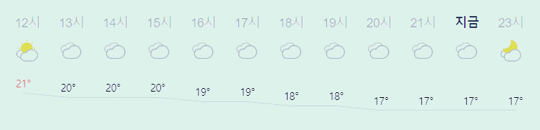 최저기온 15도(오전), 최고기온 21도(낮)