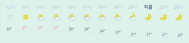 최저기온 17도(오전), 최고기온 27도(낮)