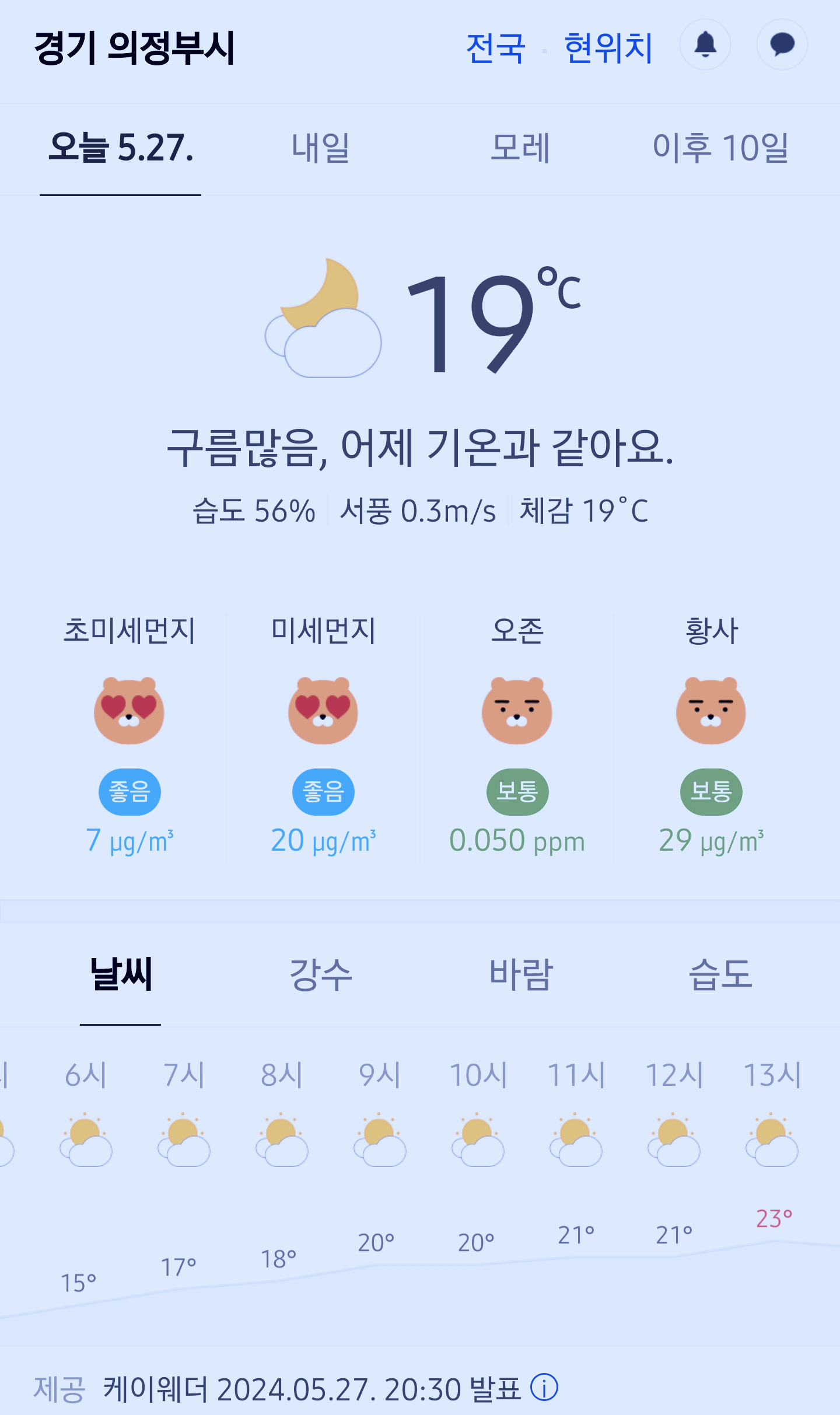 >>>경기도 의정부시 날씨 2024년 5월 27일. 의정부 날씨, 오늘의 날씨, 오늘 날씨, 2024 0527, 초미세먼지, 미세먼지, 황사, 자외선