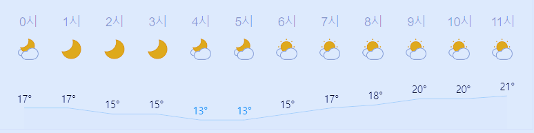 * 눈비 올 확률은 위 이미지에서 시간별 기상 상태 참조