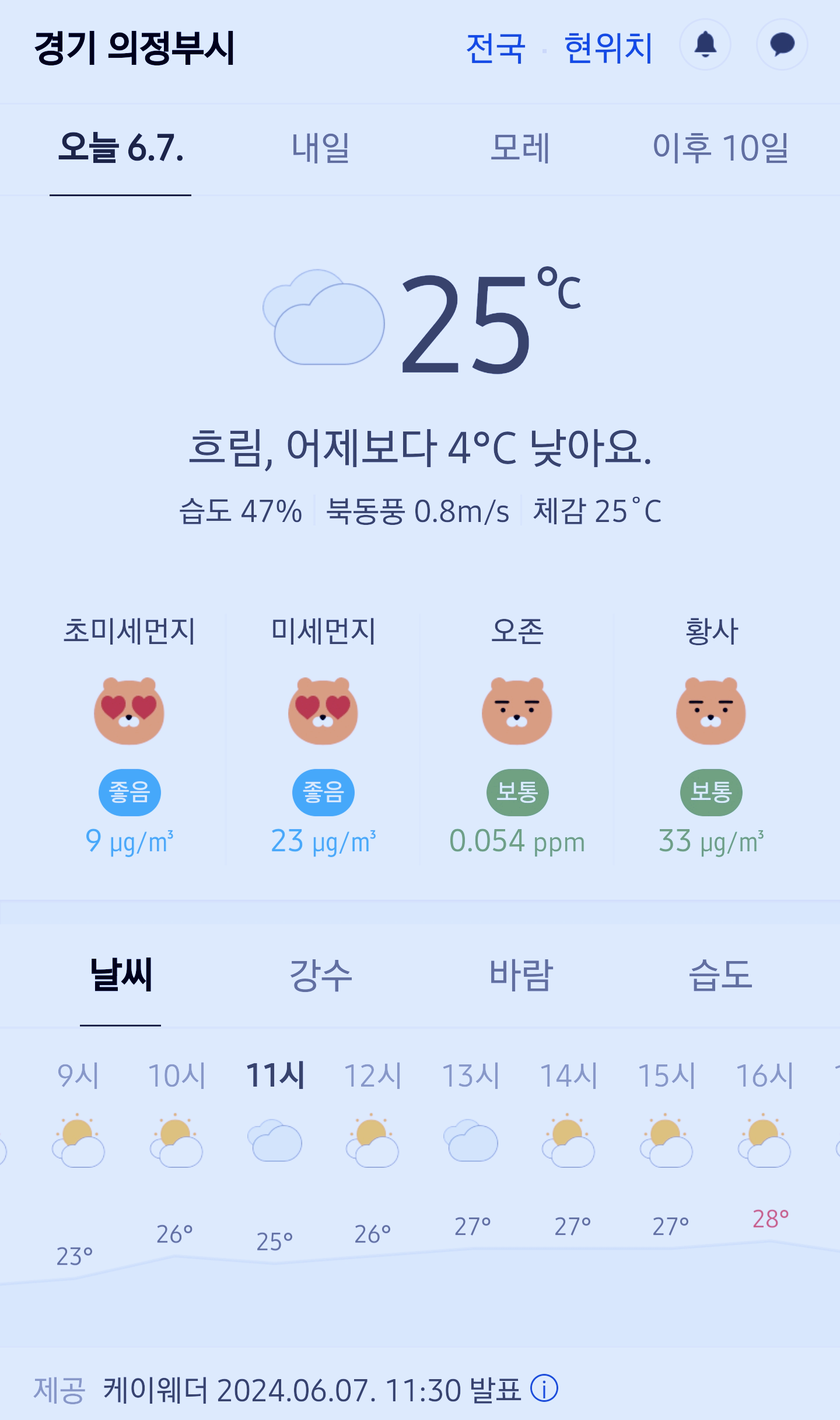 경기도 의정부시 날씨, 경기도 의정부시 오늘의 날씨, 의정부 오늘 날씨, 오늘의 날씨, 오늘 날씨, 2024 0607, 초미세먼지, 미세먼지, 황사, 자외선
