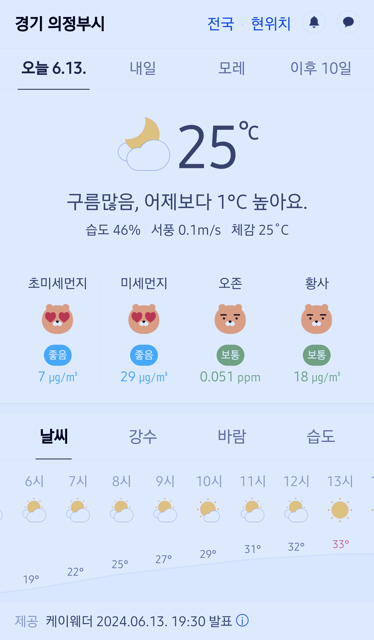 >>>경기도 의정부시 날씨 2024년 6월 13일. 의정부 날씨, 오늘의 날씨, 오늘 날씨, 2024 0613, 초미세먼지, 미세먼지, 황사, 자외선