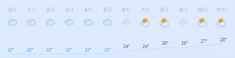 최저기온 22도(오전), 최고기온 30도(오후)