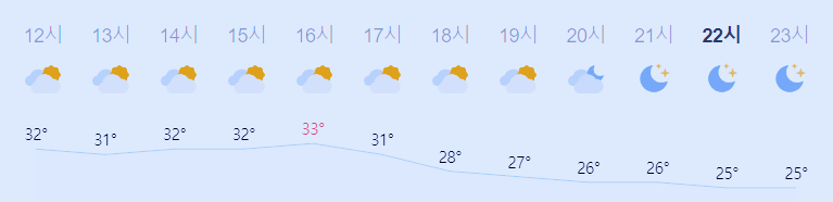 최저기온 24도(오전), 최고기온 33도(오후)
