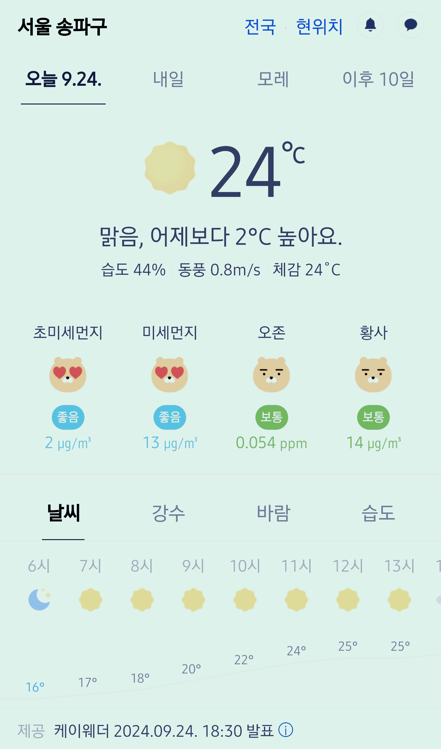 >>>서울 강남 송파구 날씨 2024년 9월 24일. 서울 강남구 오늘의 날씨, 오늘 날씨, 2024 0924, 초미세먼지, 미세먼지, 황사, 자외선