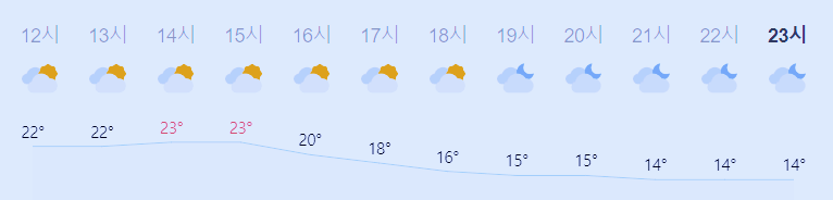 최저기온 11도(오전), 최고기온 23도(오후)