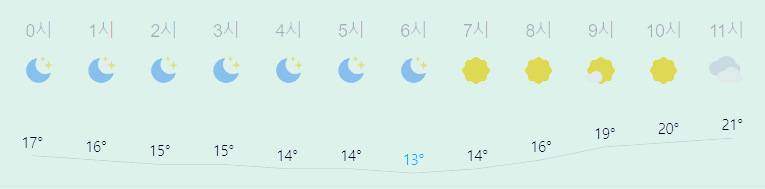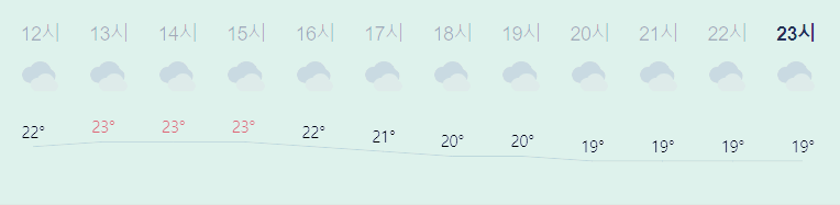 최저기온 13도(오전), 최고기온 23도(오후)