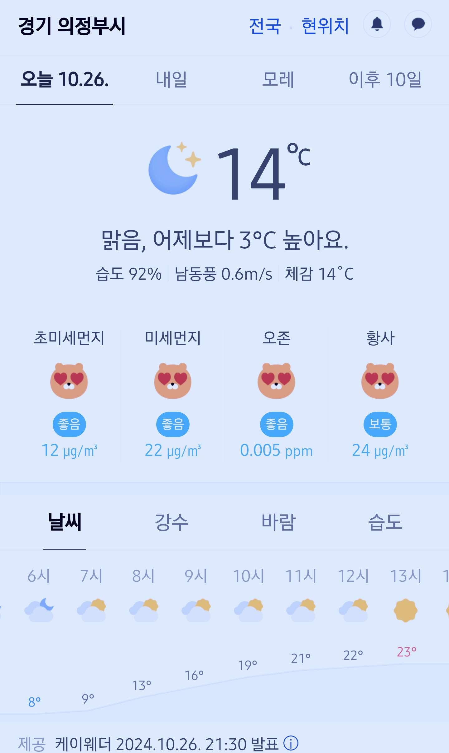 >>>경기도 의정부시 날씨 2024년 10월 26일. 의정부 날씨, 오늘의 날씨, 오늘 날씨, 2024 1026, 초미세먼지, 미세먼지, 황사, 자외선