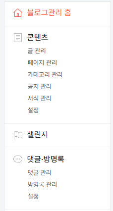 블로그 관리 페이지 좌측 메뉴에 '챌린지' 항목이 있다