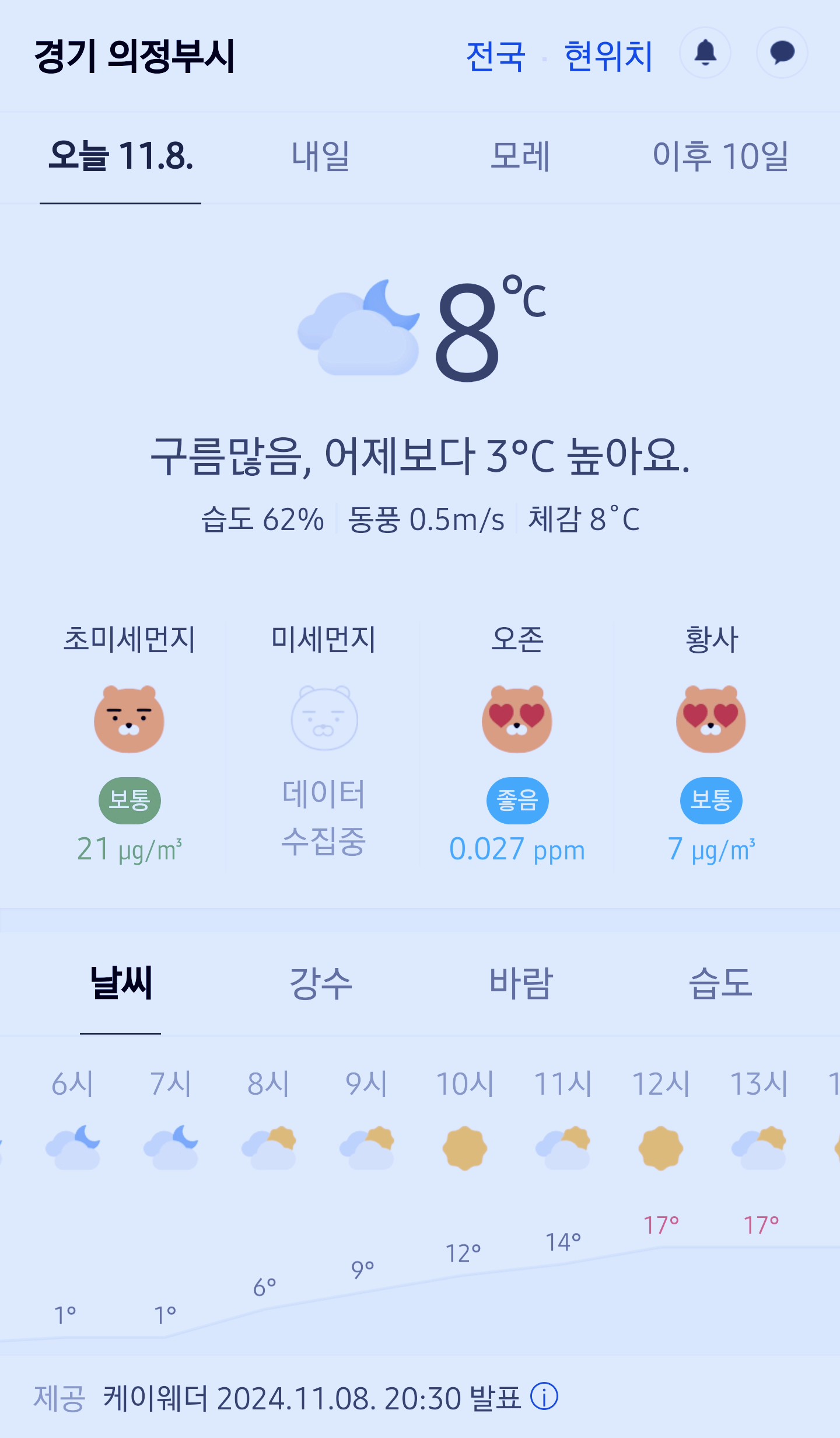 >>>경기도 의정부시 날씨 2024년 11월 8일. 의정부 날씨, 오늘의 날씨, 오늘 날씨, 2024 1108, 초미세먼지, 미세먼지, 황사, 자외선