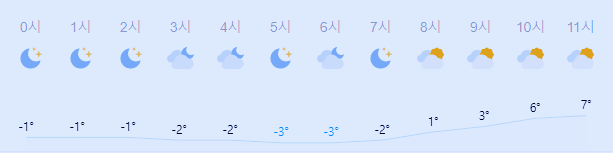 최저기온 -1도(오전), 최고기온 7도(오후)