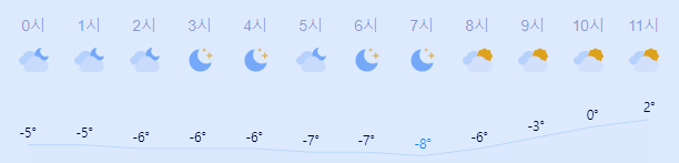 최저기온 -8도(오전), 최고기온 0도(오후)