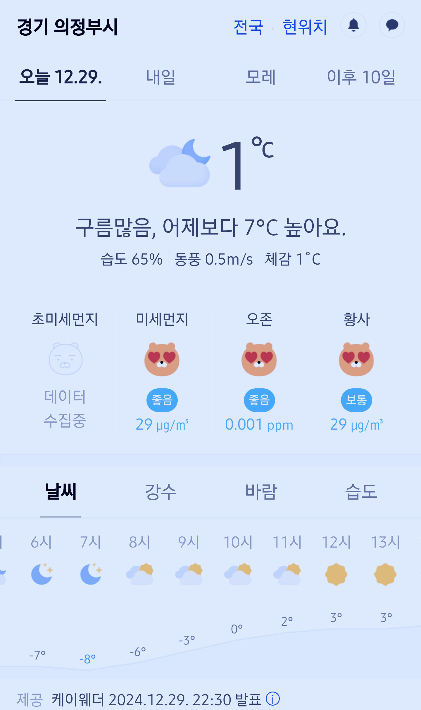 >>>경기도 의정부시 날씨 2024년 12월 29일. 의정부 날씨, 오늘의 날씨, 오늘 날씨, 2024 1229, 초미세먼지, 미세먼지, 황사, 자외선