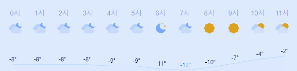최저기온 -12도(오전), 최고기온 2도(오후)