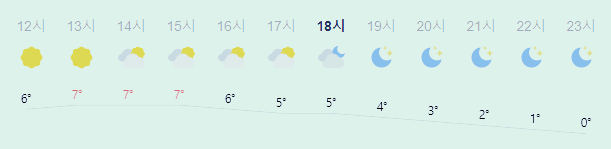 * 눈비 올 확률은 위 이미지에서 시간별 기상 상태 참조