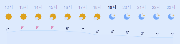 * 눈비 올 확률은 위 이미지에서 시간별 기상 상태 참조