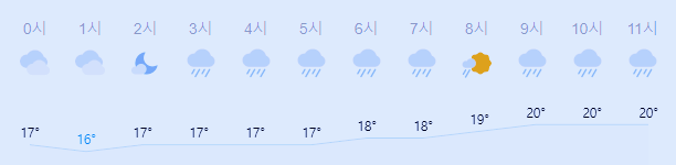 최저기온 17도(오전, 오후), 최고기온 23도(오후)