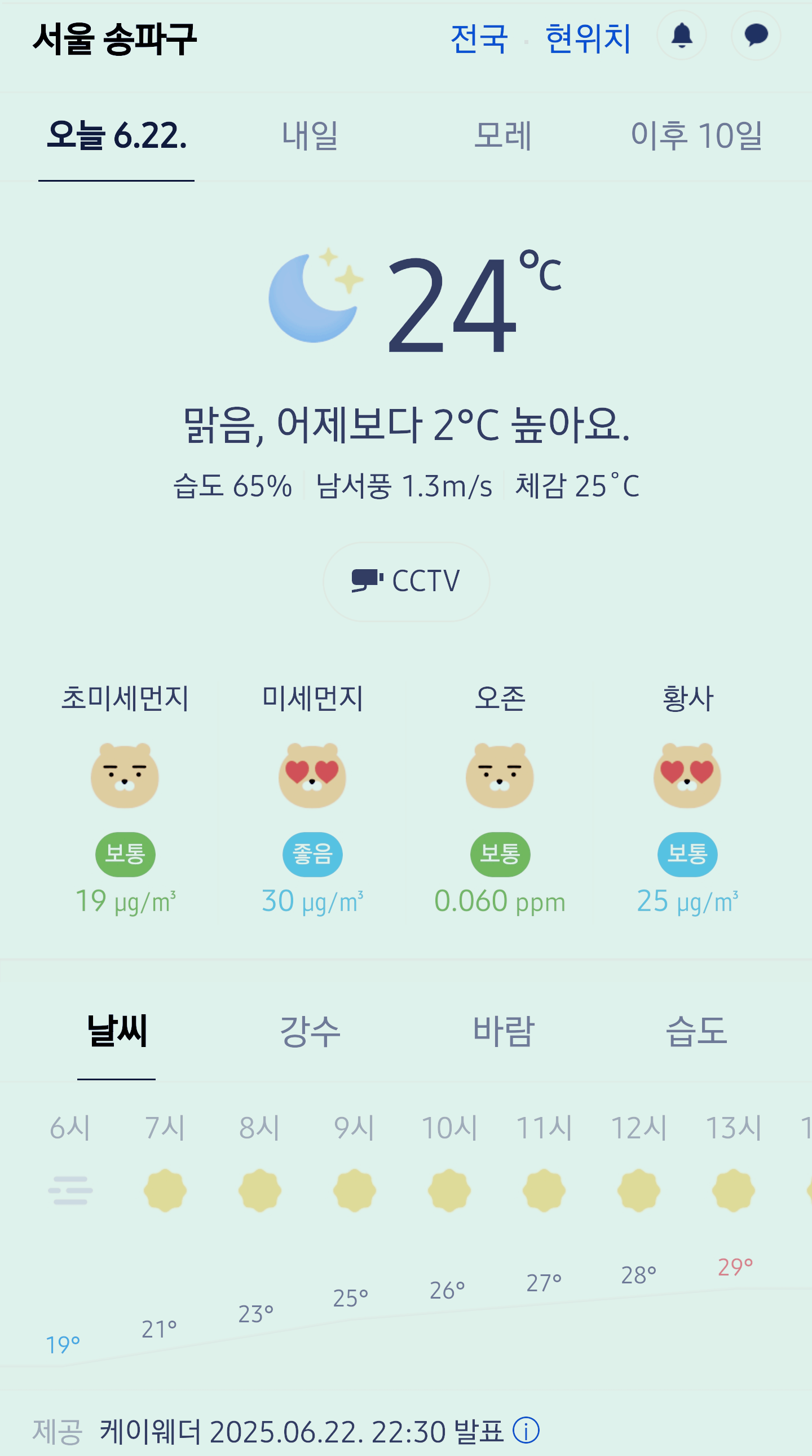 >>>서울 강남 송파구 날씨 2025년 6월 22일. 서울 강남구 오늘의 날씨, 오늘 날씨, 2025 0622, 초미세먼지, 미세먼지, 황사, 자외선
