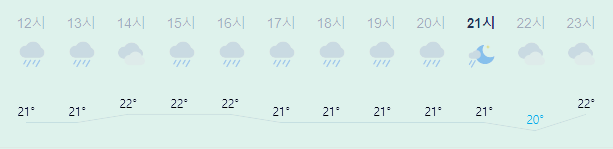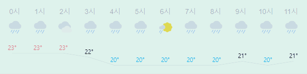 최저기온 20도(오전, 오후), 최고기온 23도(오전), 22도(오후)