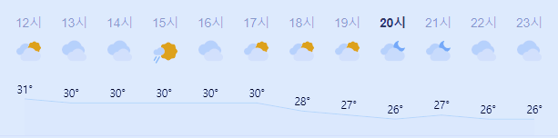 최저기온 25도(오전), 최고기온 32도(오전), 31도(오후)