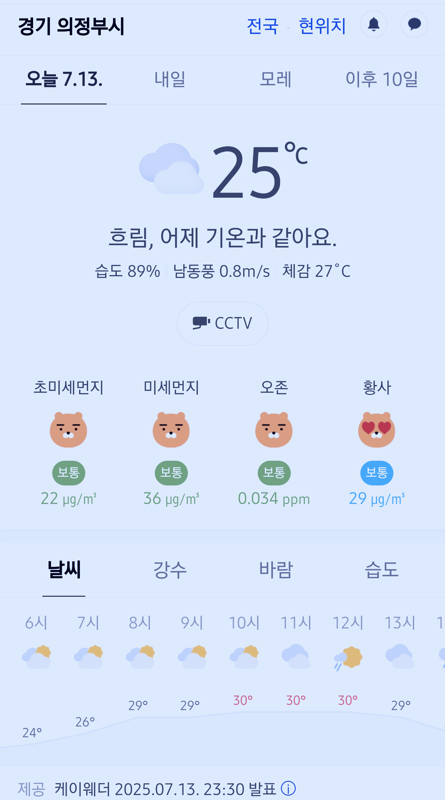 >>>경기도 의정부시 날씨 2025년 7월 13일. 의정부 날씨, 오늘의 날씨, 오늘 날씨, 2025 0713, 초미세먼지, 미세먼지, 황사, 자외선