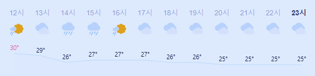 최저기온 23도(오전), 최고기온 30도(오후)
