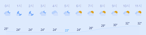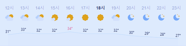 최저기온 23도(오전), 최고기온 34도(오후)