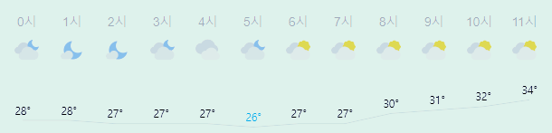 최저기온 26도(오전), 최고기온 34도(오후)