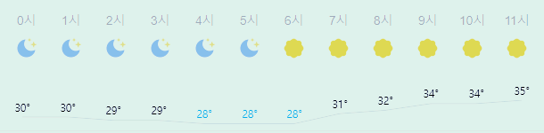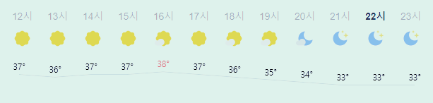 최저기온 28도(오전), 최고기온 38도(오후)